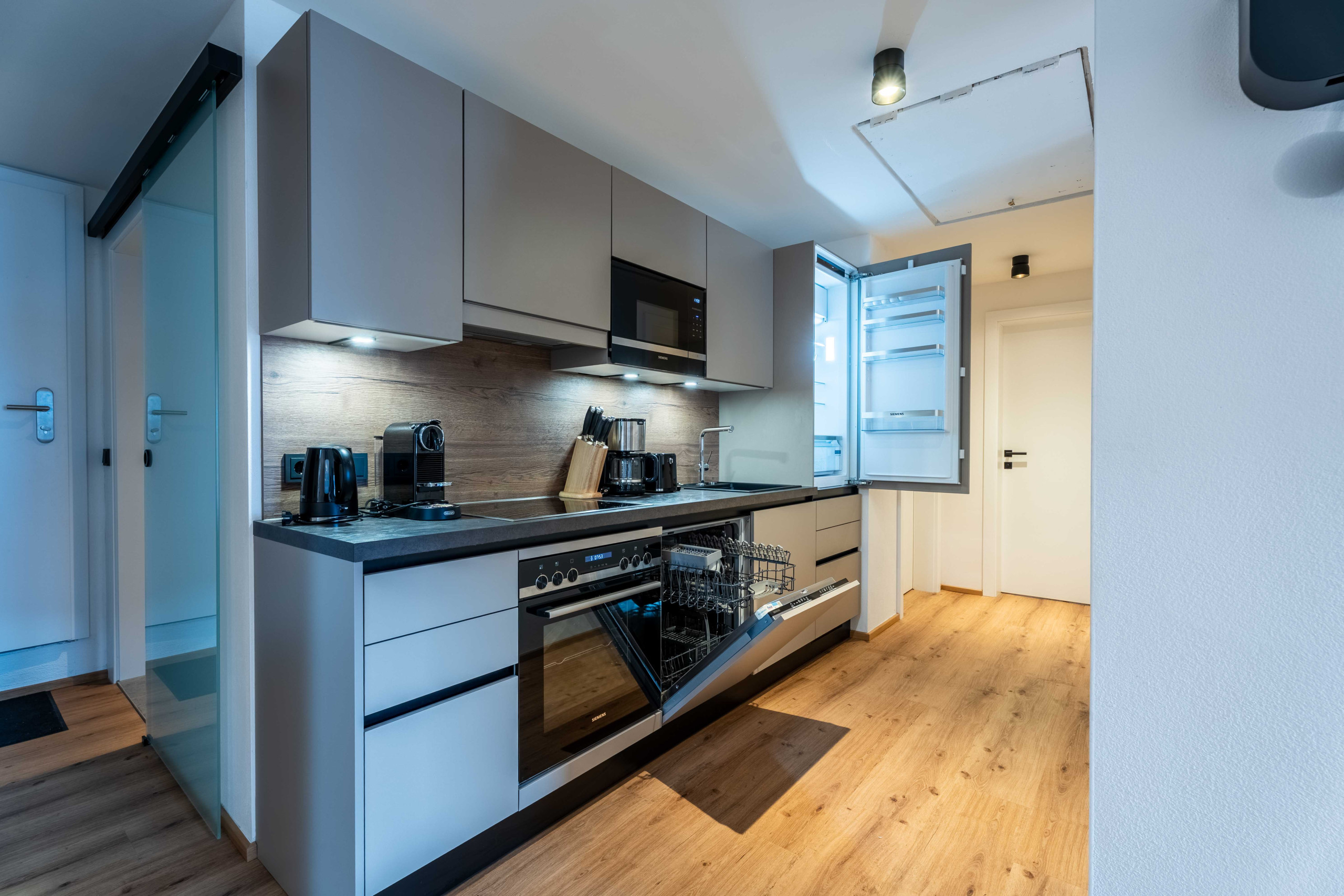 A modern and stylishly designed apartment featuring a private sauna and balcony with mountain views. Bright rooms, natural materials and refined details create an inviting alpine atmosphere for relaxing days in Leogang.