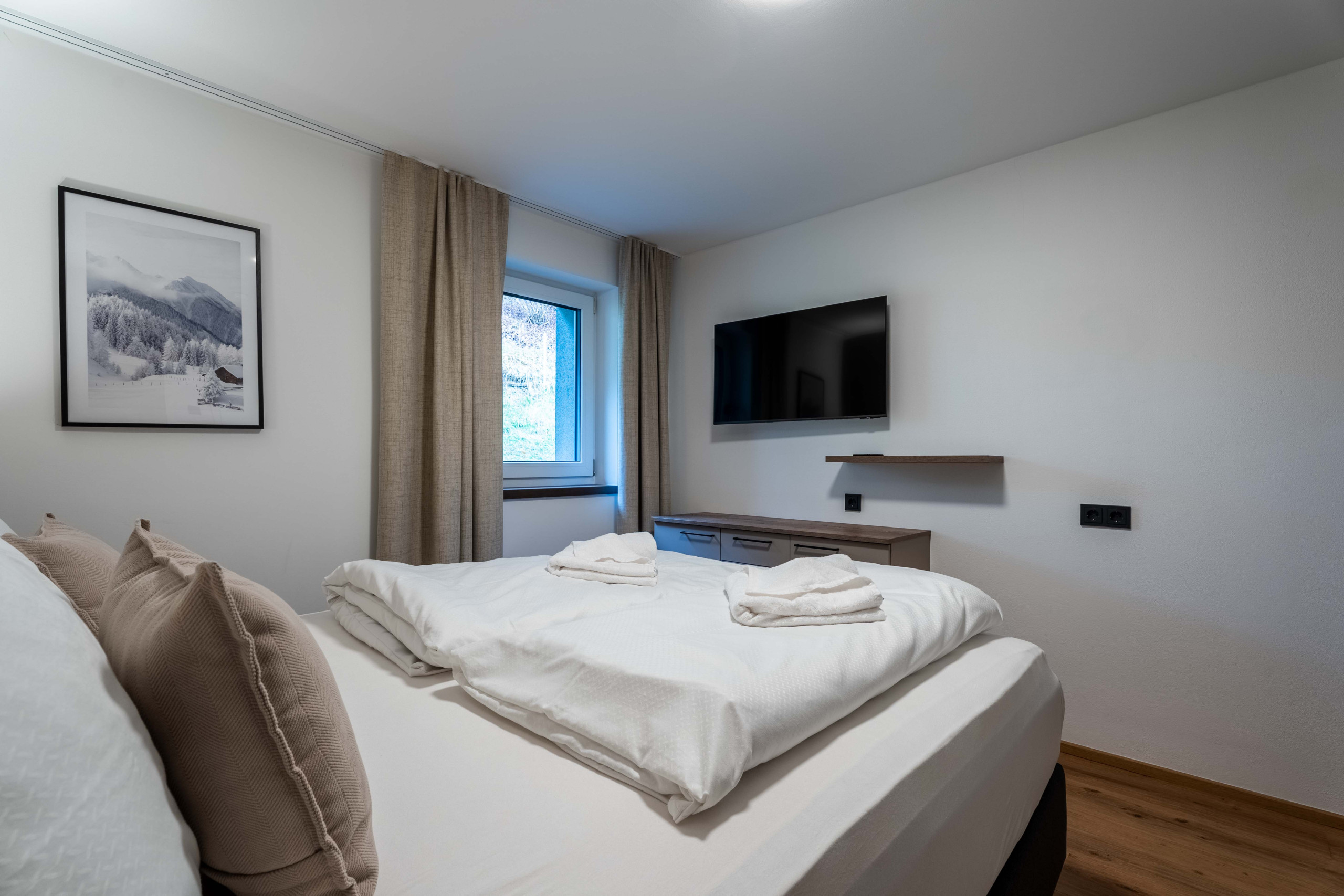Two bedrooms with double beds (box-spring 180 × 200 cm with topper)