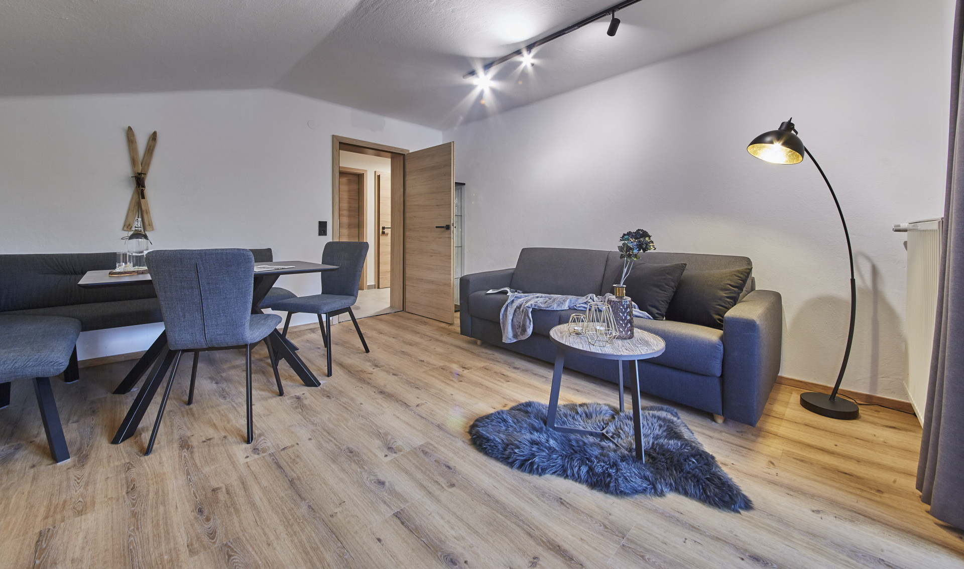 Furthermore, two outdoor parking spaces are available directly at the house. The ski room, including a ski boot dryer, is located in the basement and is accessible to our guests at any time.
