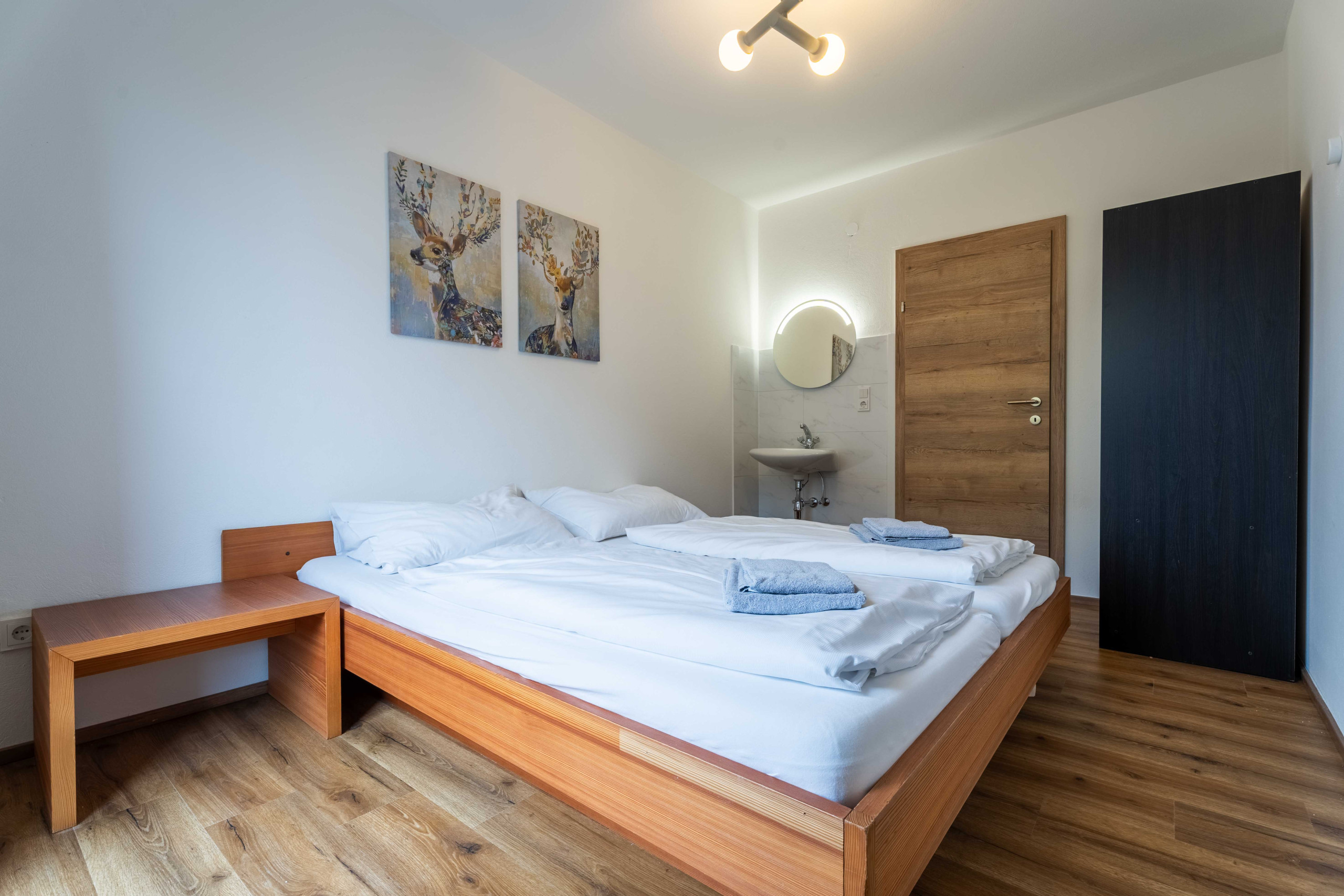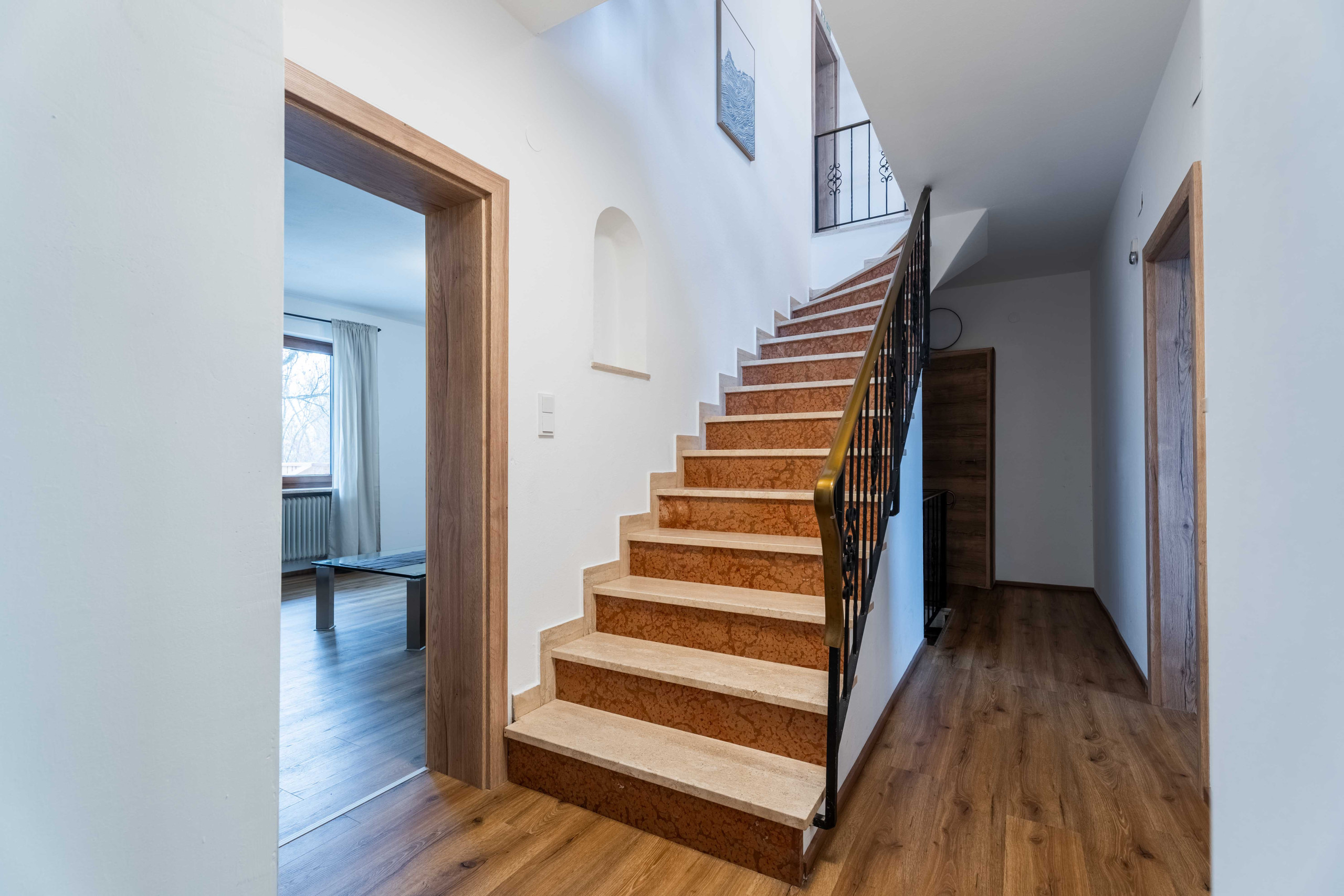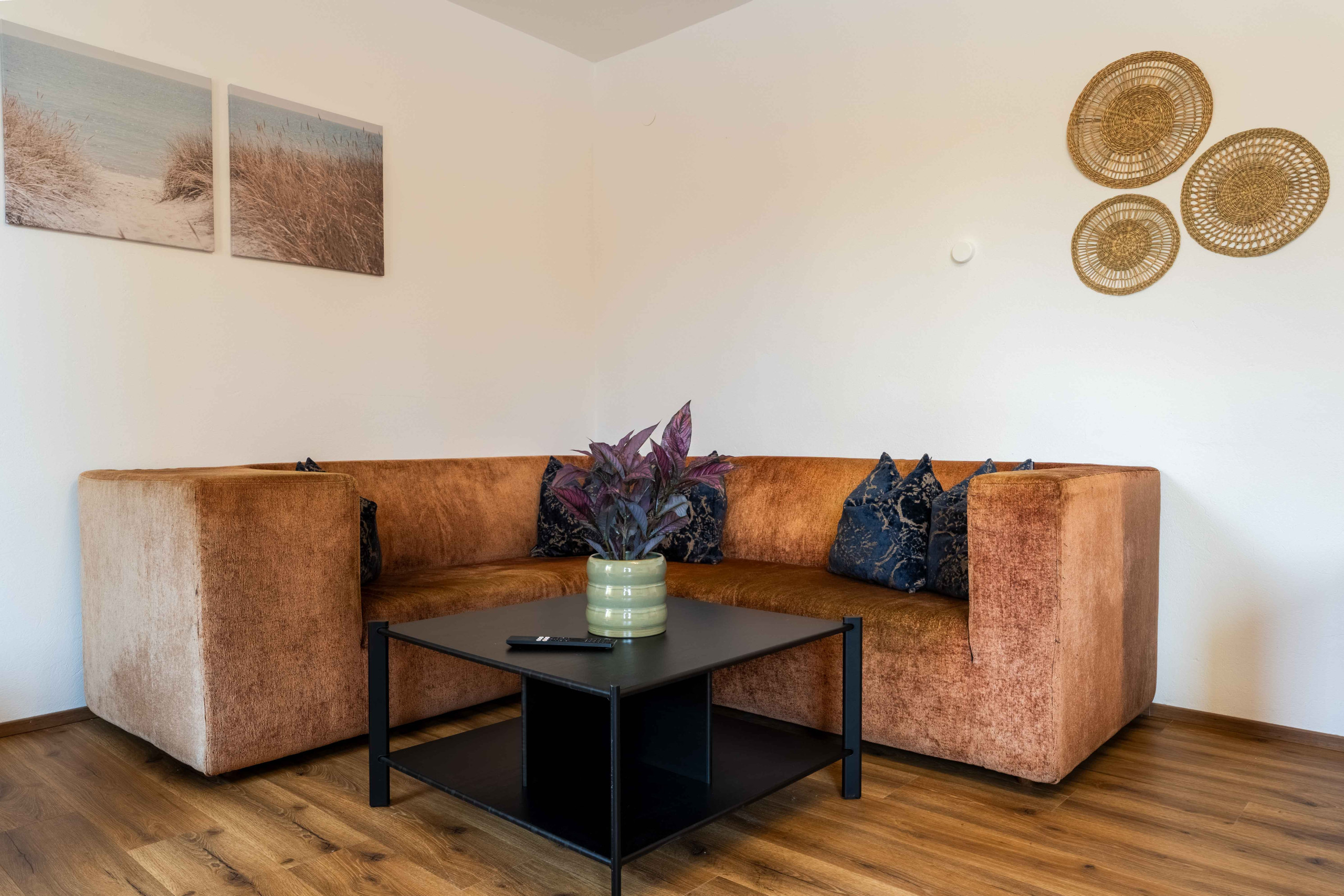 On the ground floor, you will find the new, fully equipped kitchen with a dining area – ideal for cooking together and enjoying relaxed meals. The separate living room invites you to unwind and includes a sofa bed offering an additional sleeping option.
