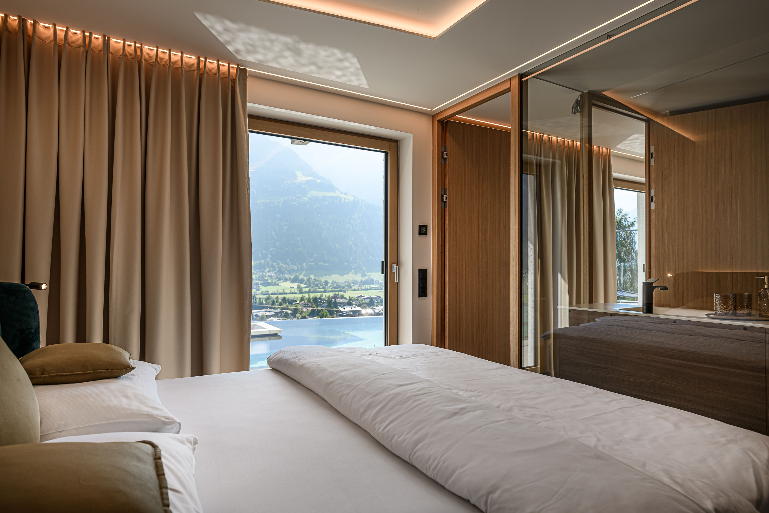 Opening december 2025 – kom tot rust in onze gloednieuwe Finse sauna en wellnessruimte, prachtig ontworpen met natuurlijke Alpenmaterialen en een adembenemend panoramisch uitzicht.
