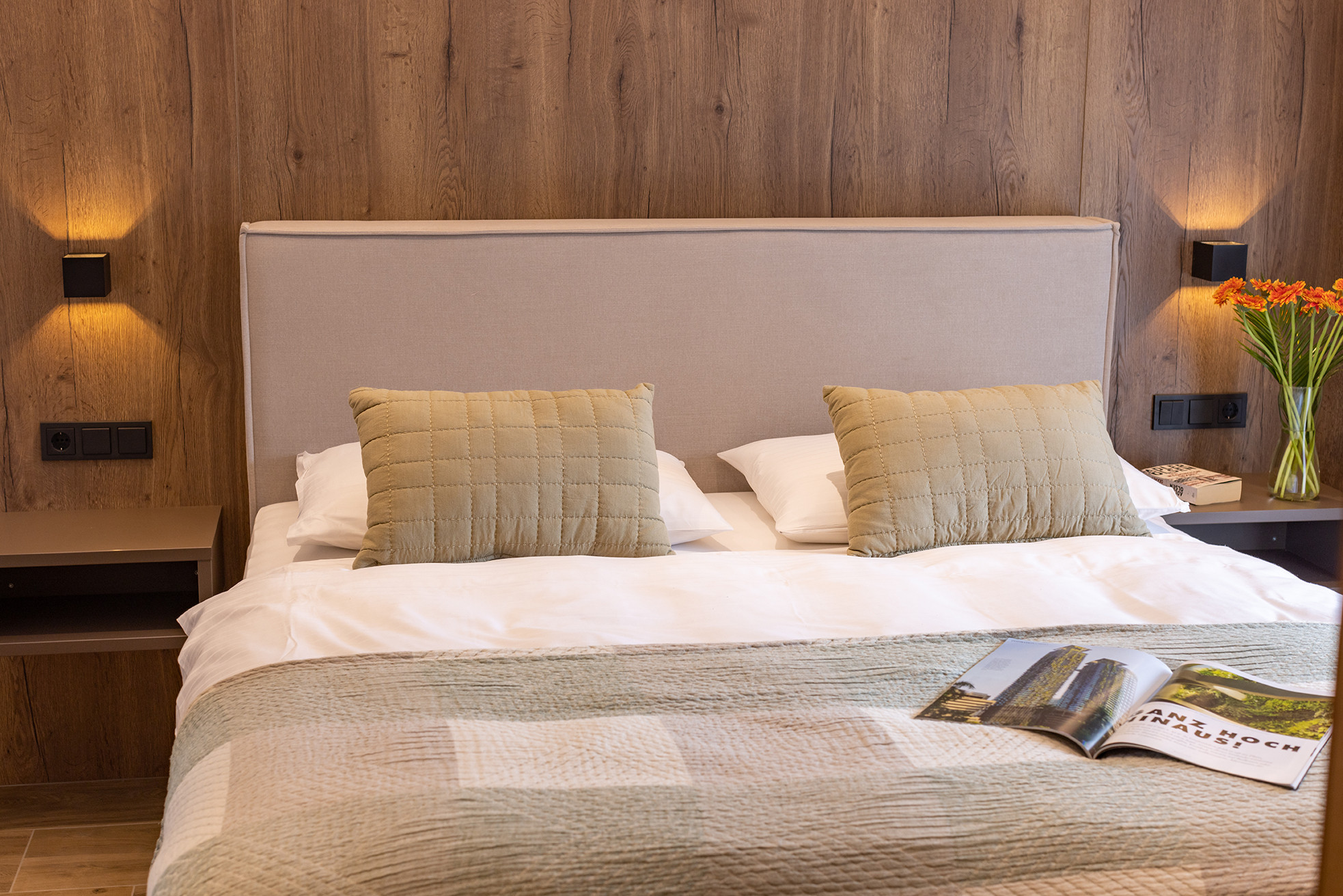Natuurlijke materialen en hout zorgen voor een gezellige uitstraling, terwijl strakke lijnen en modern design garant staan voor een aangenaam verblijf in de Oostenrijkse Alpen.