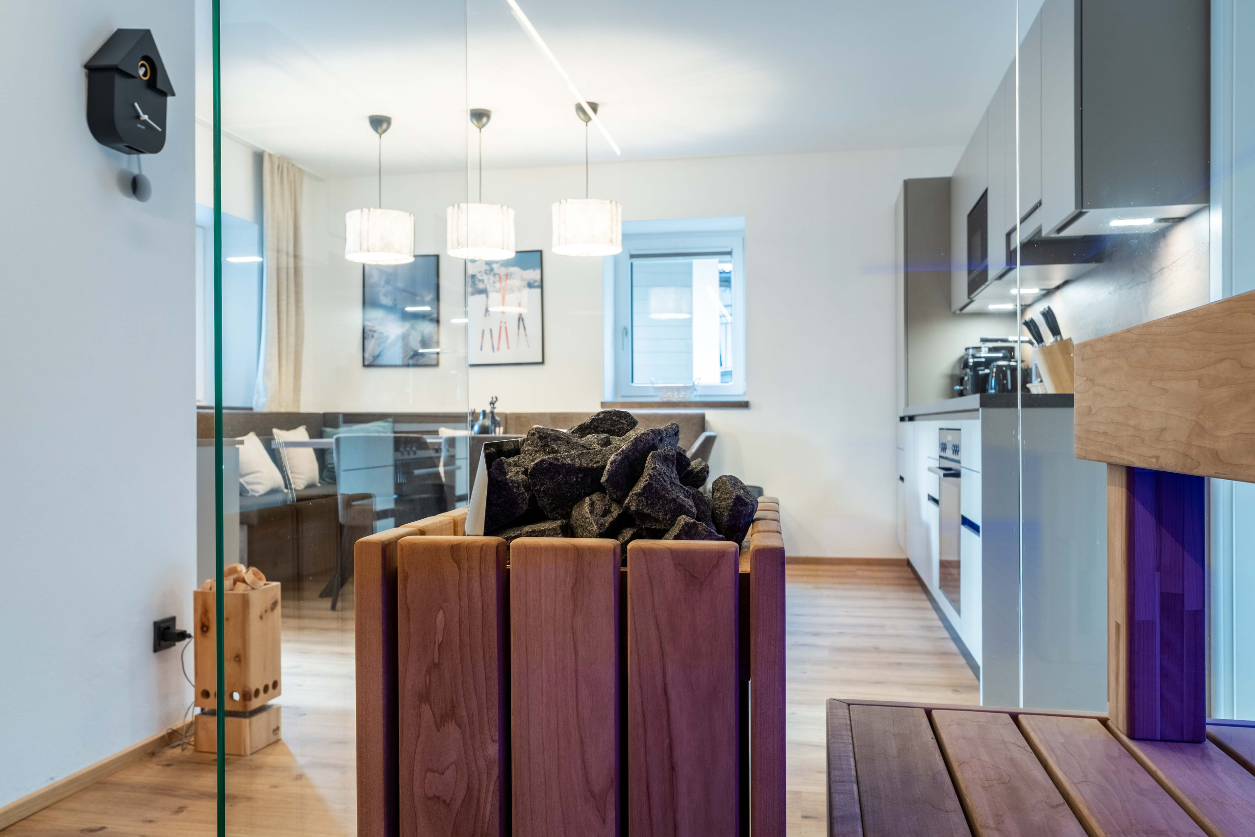 Een hoogwaardig vakantieappartement met privé Finse sauna, terras met bergzicht en een stijlvol Alpeninterieur. Warme materialen, oog voor detail en moderne voorzieningen zorgen voor een ontspannen en comfortabele sfeer.