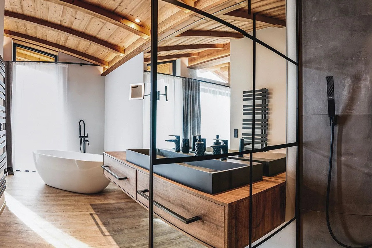 Chalet Amadeus biedt royale ruimte voor maximaal 14 gasten en beschikt over zes stijlvol ingerichte slaapkamers en vijf moderne badkamers. Op de begane grond bevinden zich een comfortabele tweepersoonsslaapkamer met en-suite badkamer en een aparte slaapkamer met twee stapelbedden – ideaal voor gezinnen met kinderen. Op de bovenverdieping zijn nog vier tweepersoonsslaapkamers, waarvan twee met een en-suite badkamer en twee met een ruime gedeelde badkamer. Vanuit de twee slaapkamers met en-suite badkamers op de bovenverdieping is er directe toegang tot het balkon, dat een indrukwekkend uitzicht biedt op het omliggende Alpenpanorama.