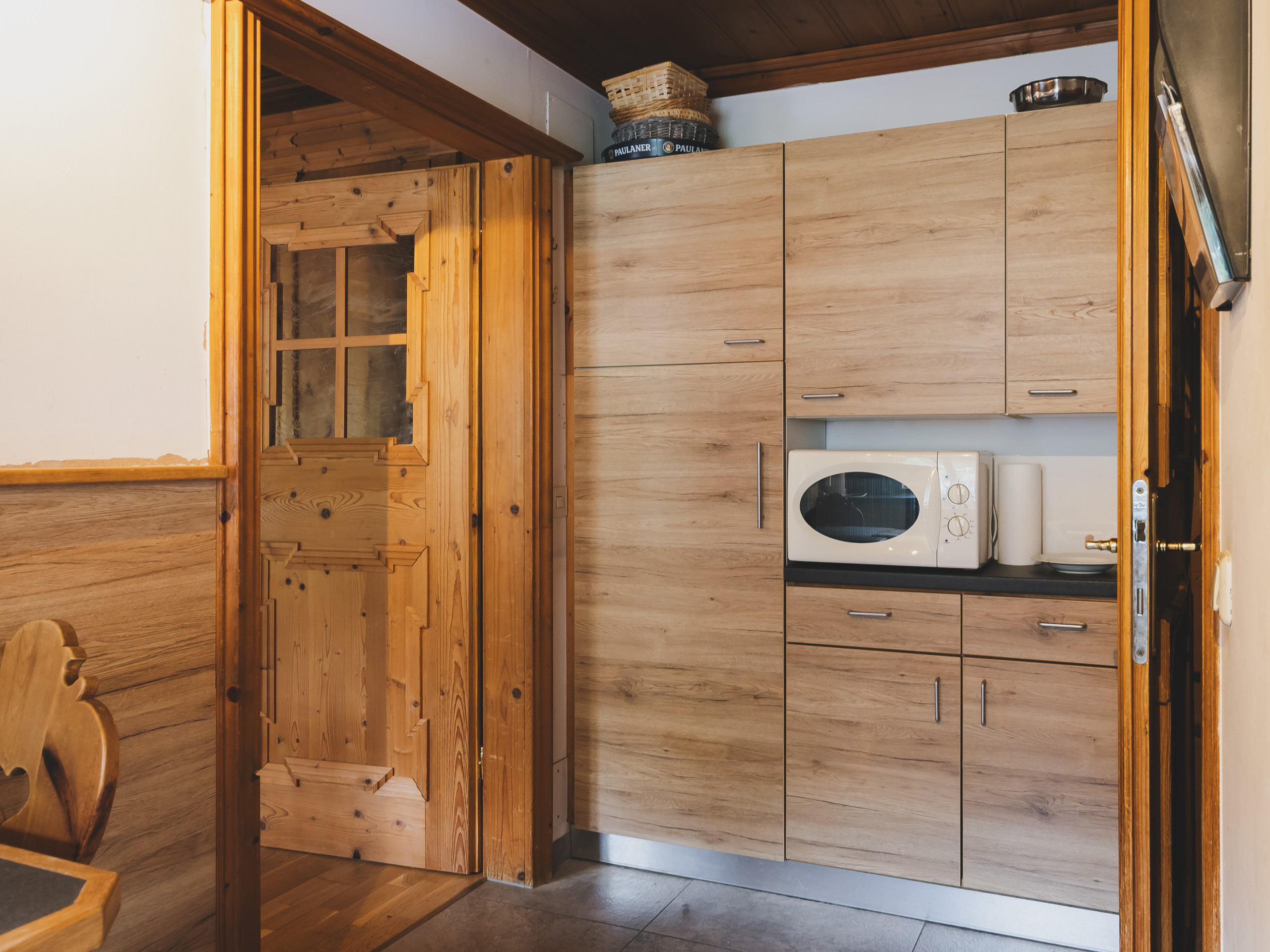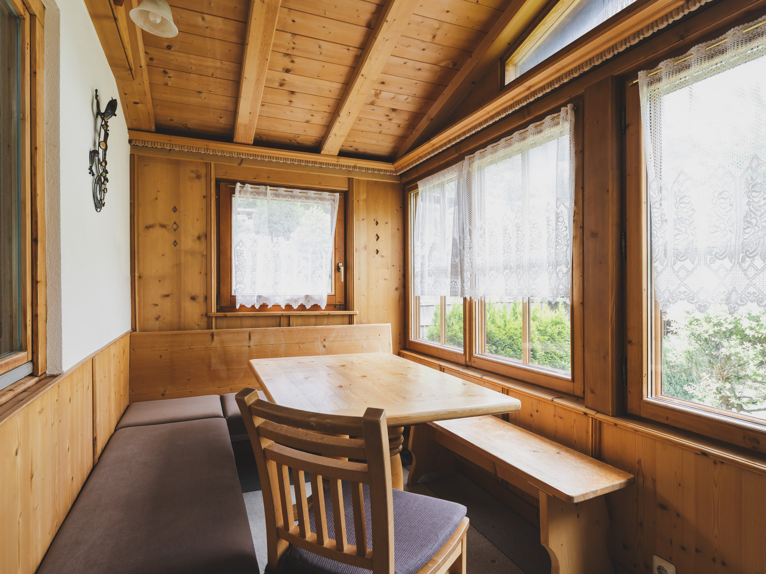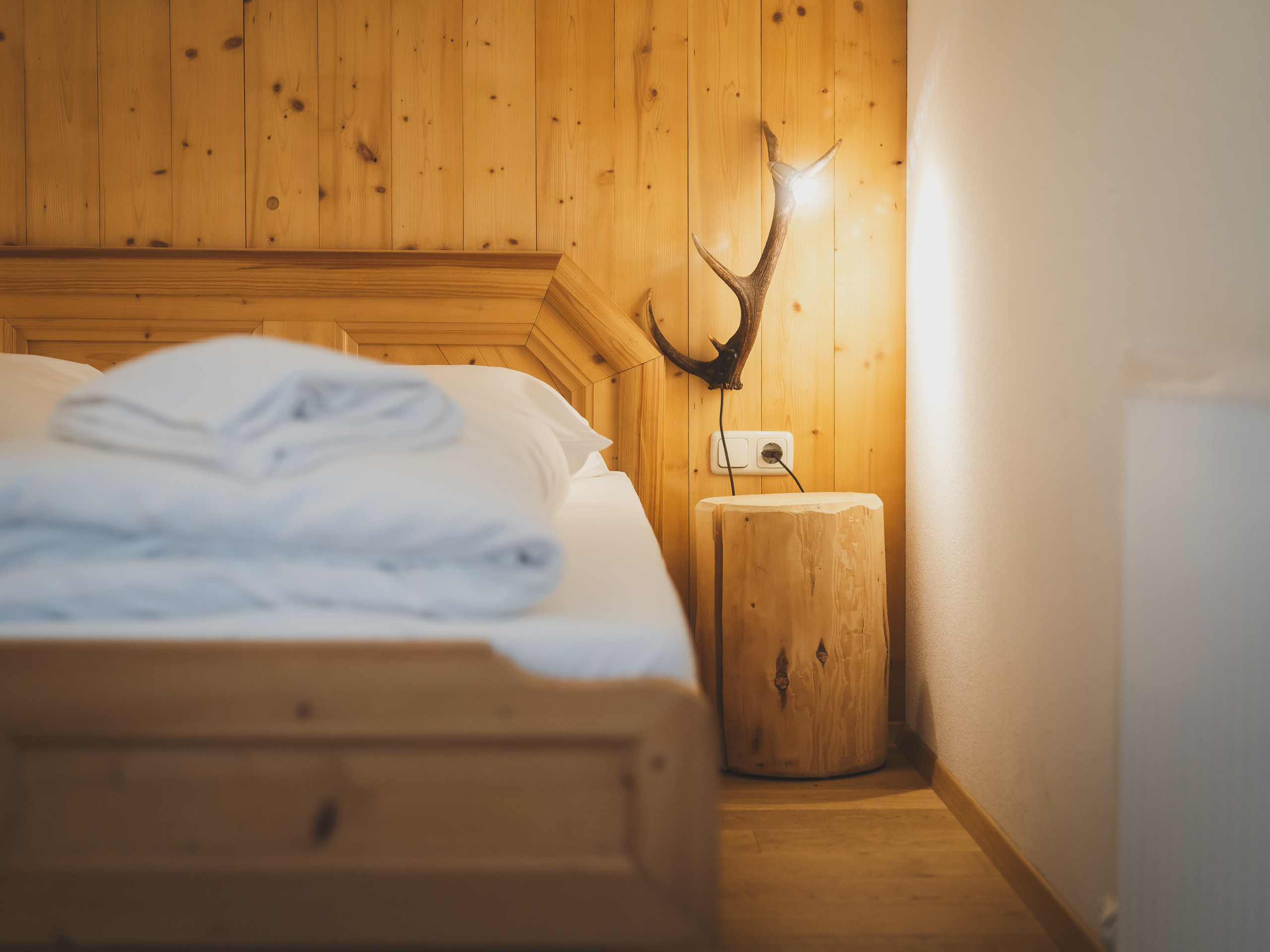 Binnen biedt het chalet vier gezellige tweepersoons slaapkamers – ideaal voor groepen tot acht gasten. Eén slaapkamer bevindt zich op de begane grond, terwijl de overige drie zich boven bevinden onder charmant schuine plafonds. De woonkamer met dubbele plafondhoogte vormt het warme hart van het huis – ruim maar toch knus, met traditioneel houtwerk en een uitnodigende sfeer. Voor extra comfort is er ook een heerlijke serre – een tweede zithoek, perfect om te lezen of te ontspannen.