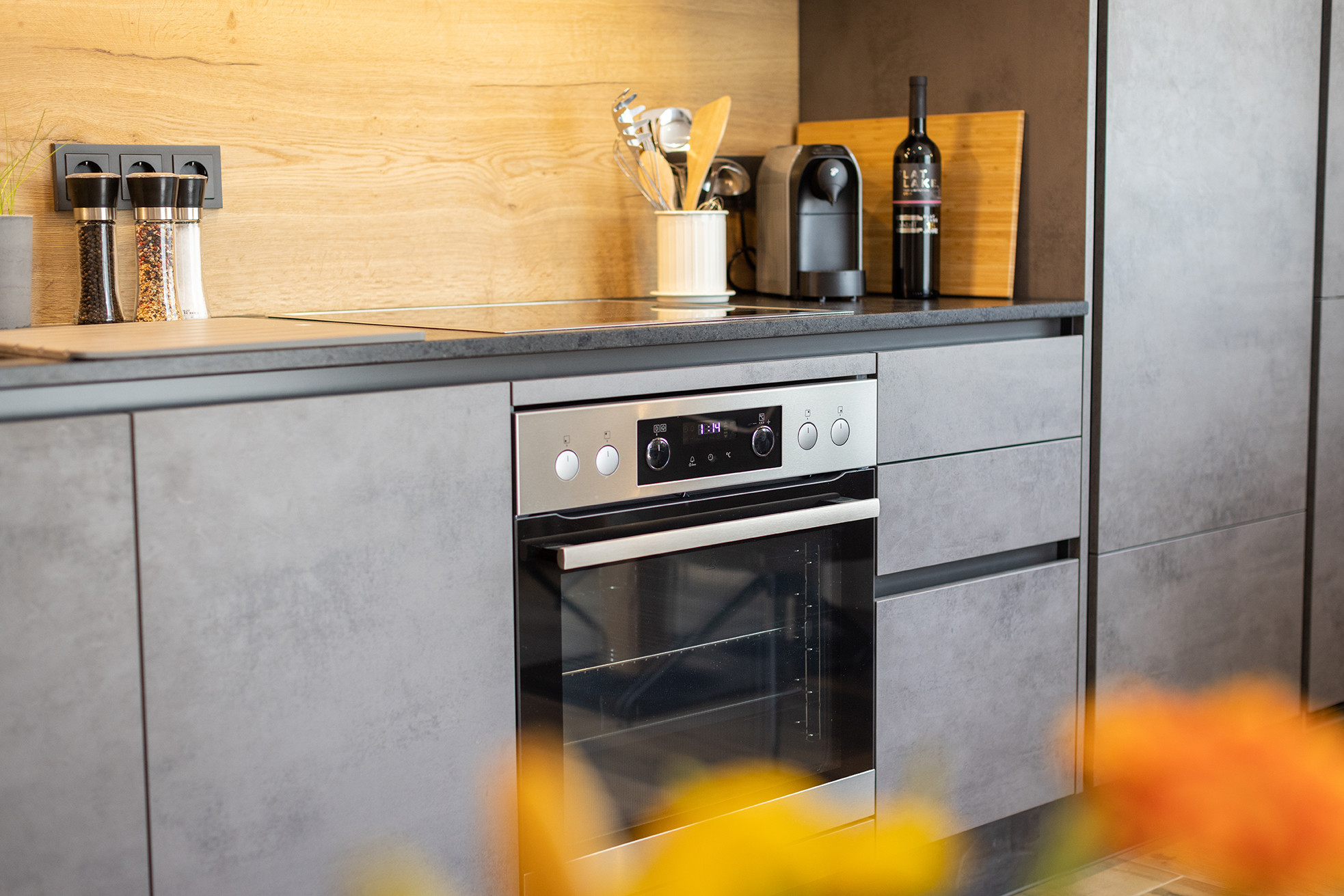 Natürliche Materialien und viel Holz schaffen eine warme und einladende Atmosphäre, während die moderne Gestaltung für Komfort und Funktionalität sorgt.