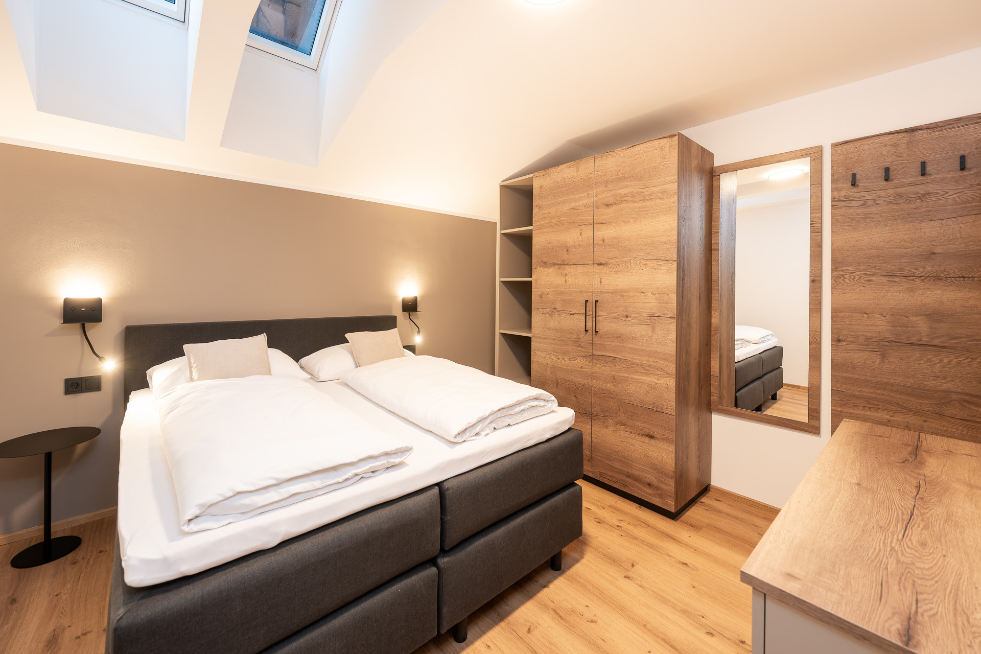 Das Apartment bietet drei Schlafzimmer mit Doppelbett sowie einen offenen Ess- und Kochbereich mit TV. Die voll ausgestattete Küche verfügt über moderne Geräte – Backofen, Herd, Mikrowelle, Geschirrspüler, Kaffeemaschine und mehr. Der Wellnessbereich mit privater Sauna lädt zum Entspannen ein. Dusche und WC sind in separaten Räumen untergebracht, um Familien und Gruppen mehr Komfort zu bieten. Vom Balkon genießen Sie den herrlichen Blick auf die Leoganger Steinberge.