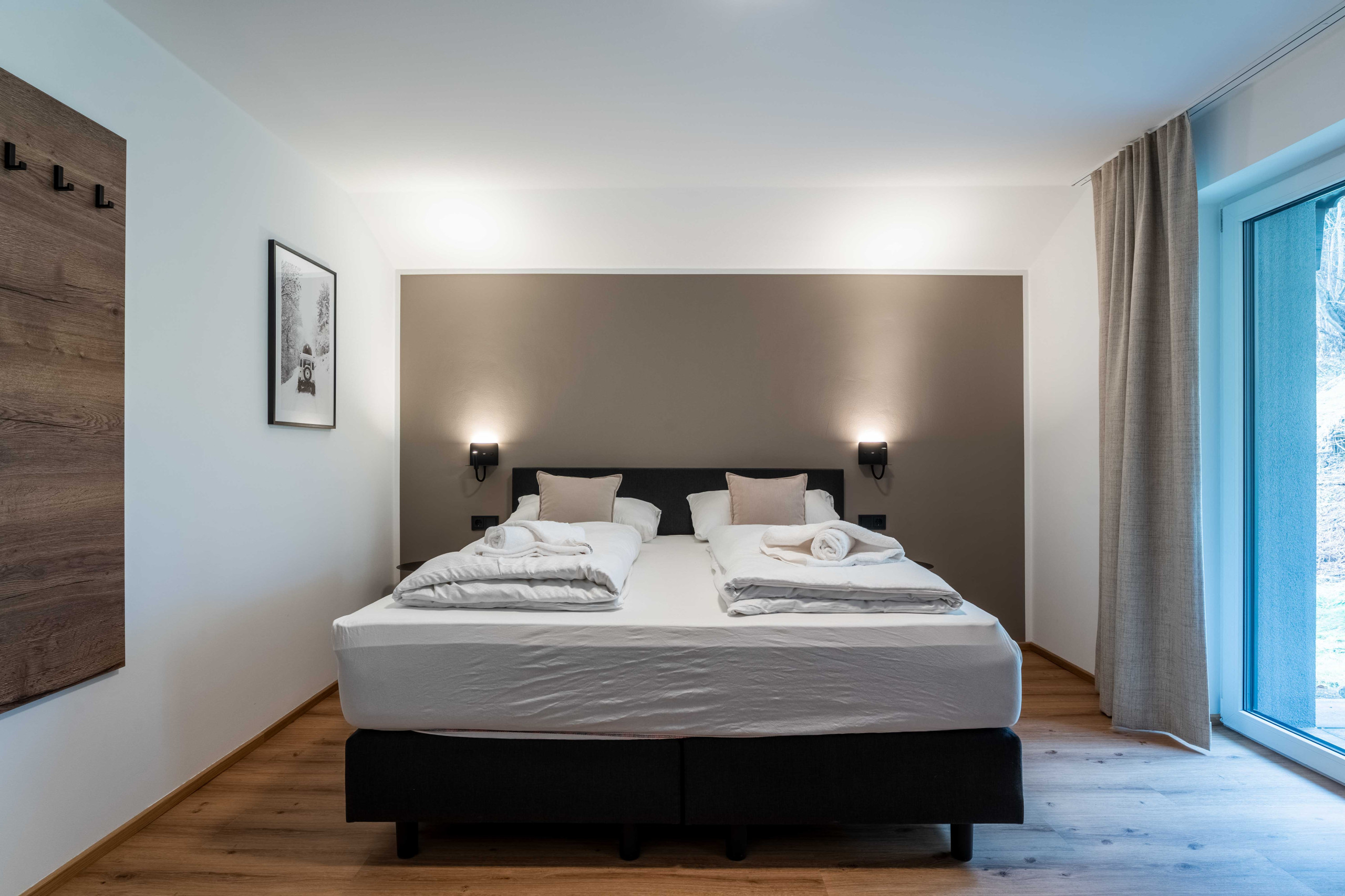 Das Apartment verfügt über zwei Schlafzimmer mit Doppelbett (Boxspringbetten 180 × 200 cm mit Topper) sowie ein modernes Badezimmer mit Dusche und ein separates WC. Im offenen Wohn- und Essbereich lädt ein Esstisch zum gemeinsamen Beisammensein ein. Die voll ausgestattete Küche bietet Herd, Kühlschrank, Mikrowelle, Kaffeemaschine, Wasserkocher und alle wichtigen Küchenutensilien. Ein Schlafsofa bietet Platz für eine zusätzliche Person. Die private finnische Sauna sorgt für Entspannung nach einem aktiven Tag in den Bergen. Von Balkon und Terrasse genießen Sie den herrlichen Blick auf die Leoganger Steinberge.