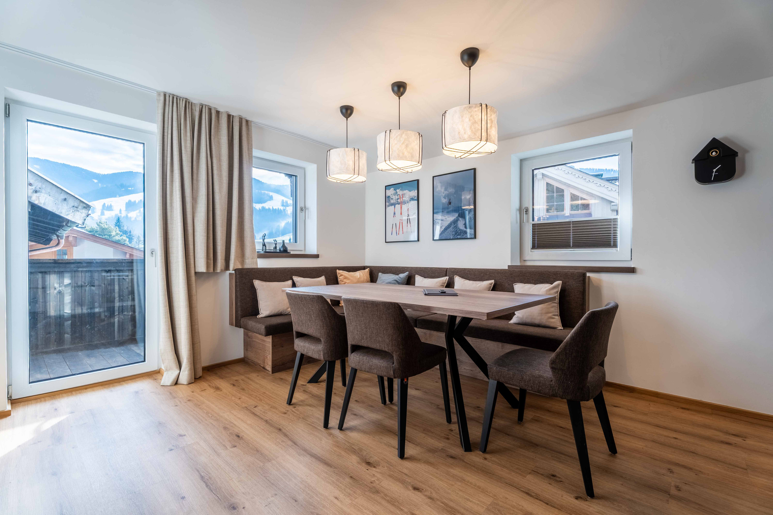 Eine moderne Ferienwohnung mit privater finnischer Sauna, Balkon mit Bergblick und sonniger Terrasse erwartet Sie in ruhiger Lage in Leogang. Helle Räume, natürliche Materialien und durchdachte Details schaffen eine gemütliche Atmosphäre mit alpinem Flair.