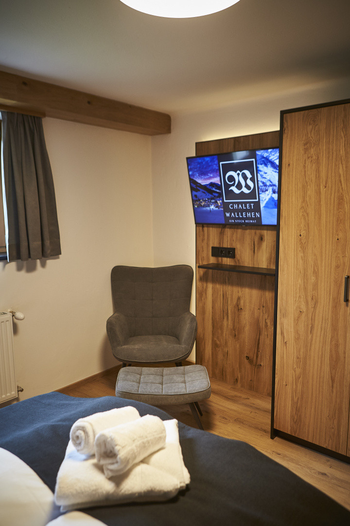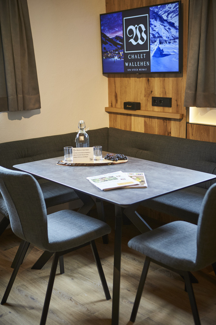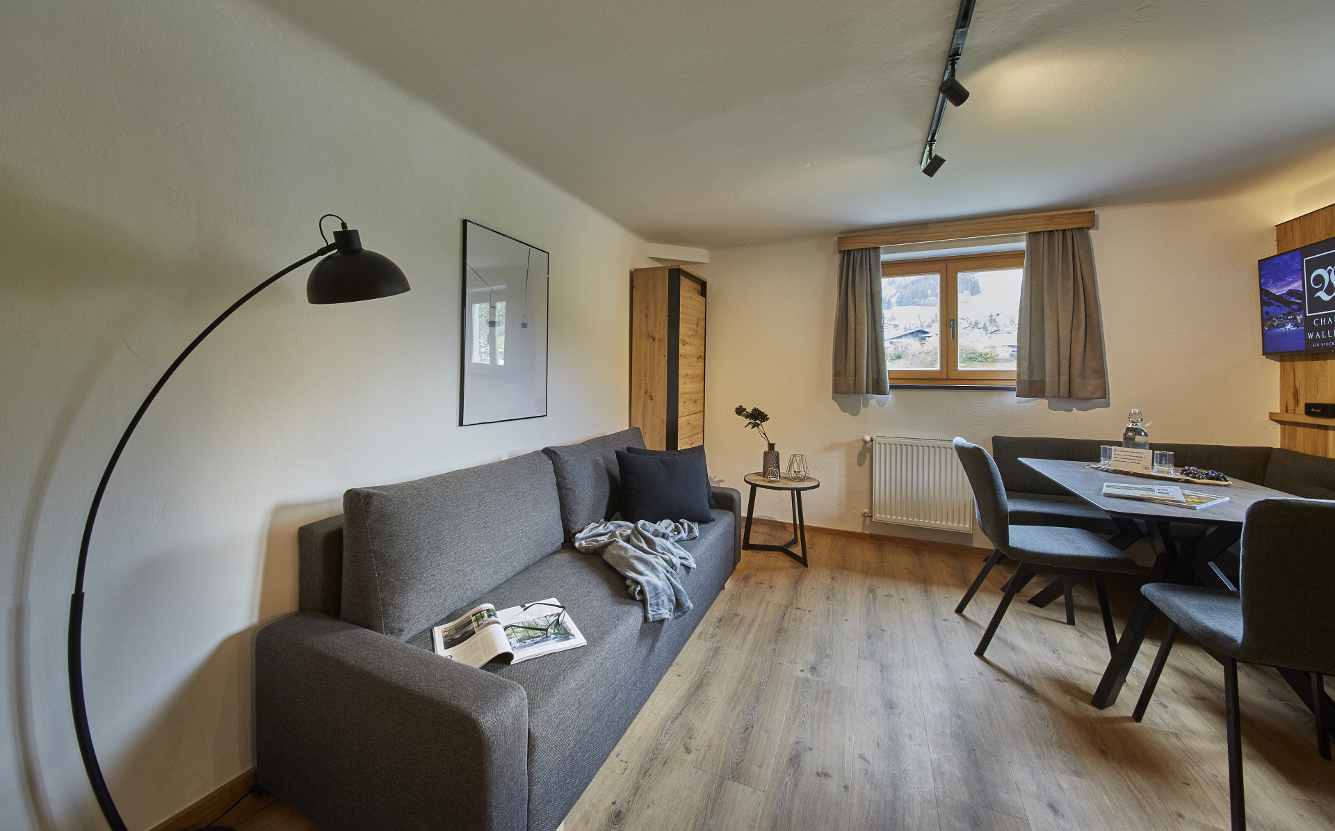 Das Apartment Chalet Wallehen – TOP 1 bietet Platz für bis zu 6 Personen und verfügt über 75 m² Wohnfläche. Zwei separate Schlafzimmer sorgen für komfortable Rückzugsmöglichkeiten: Eines ist mit einem Einzelbett und einem Doppelbett ausgestattet, das zweite mit einem Doppelbett. Im Wohnzimmer steht zusätzlich ein Einzelschlafsofa als weitere Schlafmöglichkeit zur Verfügung. Das Apartment beinhaltet ein Badezimmer mit Dusche sowie ein separates WC. Die voll ausgestattete Küche verfügt über Kühlschrank, Gefrierfach, Backofen, Herd, Geschirrspüler, Toaster, eine Nespresso-Tabs Kaffeemaschine sowie sämtliche Küchenutensilien. Kostenloses WLan ist im kompletten Haus verfügbar. Das Apartment liegt im Erdgeschoss und bietet einen schönen Blick auf das Ortszentrum Saalbach als auch auf die umliegende Bergwelt.