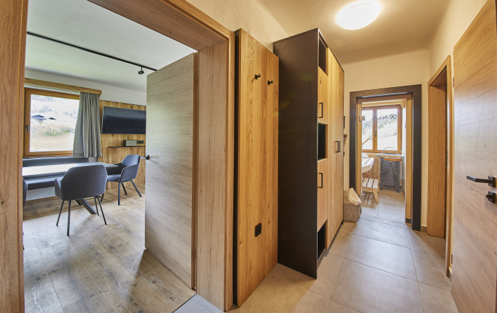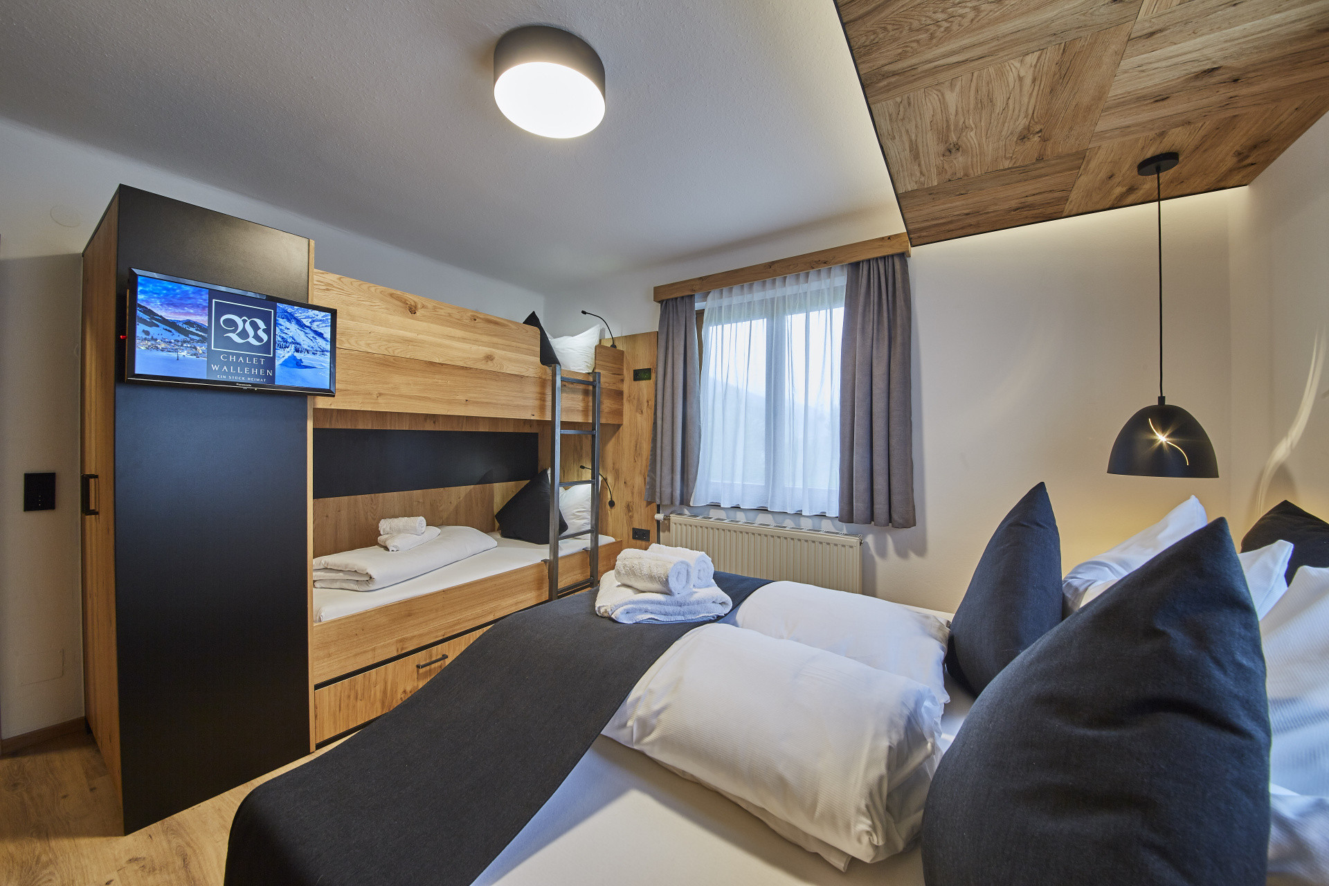 Das Apartment Chalet Wallehen – TOP 2 bietet Platz für bis zu 9 Personen und verfügt über 85 m² Wohnfläche. Zwei separate Schlafzimmer sorgen für komfortable Rückzugsmöglichkeiten: Eines ist mit einem Doppelbett ausgestattet, das zweite mit einem Doppelbett sowie einem Stockbett. Im Wohnzimmer stehen zusätzlich ein Doppelschlafsofa und ein Einzelschlafsofa als weitere Schlafmöglichkeiten zur Verfügung. Das Apartment verfügt über zwei Badezimmer mit Dusche sowie ein separates WC. Die voll ausgestattete Küche bietet einen Kühlschrank, Gefrierfach, Backofen, Herd, Geschirrspüler, Toaster, eine Nespresso-Tabs Kaffeemaschine sowie sämtliche Küchenutensilien. Kostenloses WLan ist im kompletten Haus verfügbar. Das Apartment liegt im 1. Obergeschoss und bietet einen schönen Blick auf das Ortszentrum Saalbach als auch auf die umliegende Bergwelt. Zusätzlich steht Ihnen eine private Sauna im Apartment zur Verfügung.