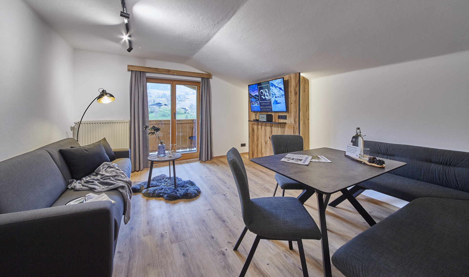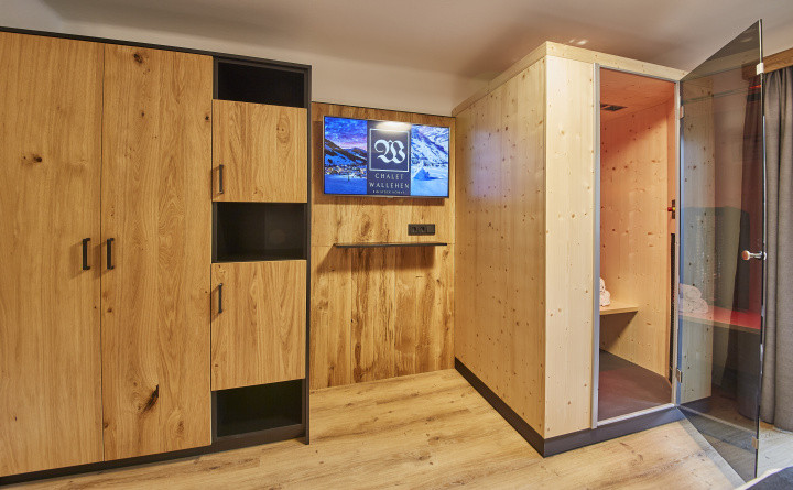 Das Apartment Chalet Wallehen – TOP 6 bietet Platz für bis zu 6 Personen und verfügt über 66 m² Wohnfläche. Zwei separate Schlafzimmer sorgen für komfortable Rückzugsmöglichkeiten, beide ausgestattet mit einem Doppelbett. Im Wohnzimmer steht zusätzlich ein Doppelschlafsofa als weitere Schlafmöglichkeit zur Verfügung. Das Apartment verfügt über ein Badezimmer mit Dusche sowie ein separates WC. Die voll ausgestattete Küche bietet einen Kühlschrank, Gefrierfach, Backofen, Herd, Geschirrspüler, Toaster, eine Nespresso-Tabs Kaffeemaschine sowie sämtliche Küchenutensilien. Kostenloses WLan ist im kompletten Haus verfügbar. Das Apartment liegt im 3. Obergeschoss und bietet einen schönen Bergblick sowie einen direkten Blick auf die Skipiste. Zusätzlich verfügt das Apartment über einen Balkon sowie über eine private Infrarotsauna für entspannte Stunden nach einem aktiven Tag.