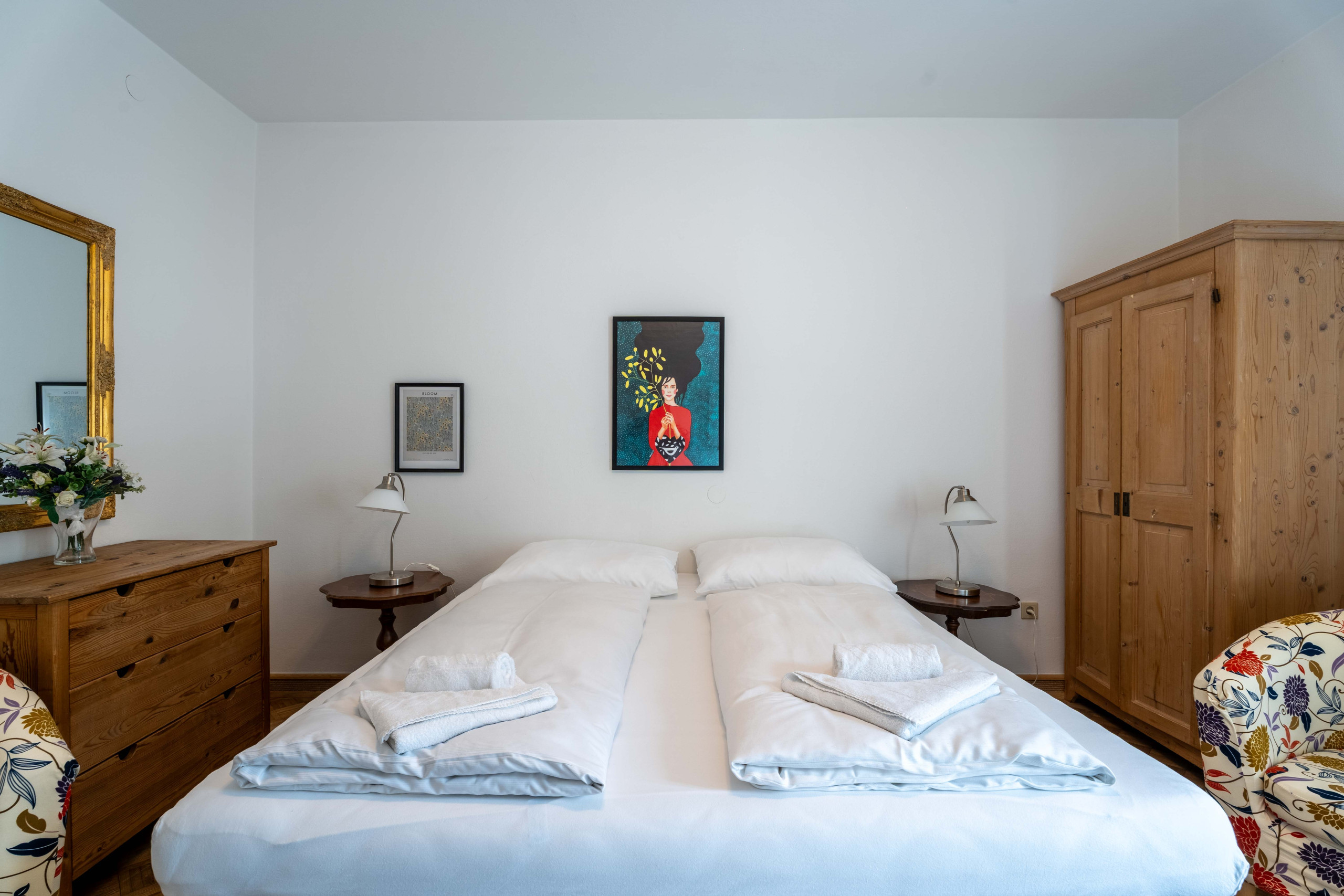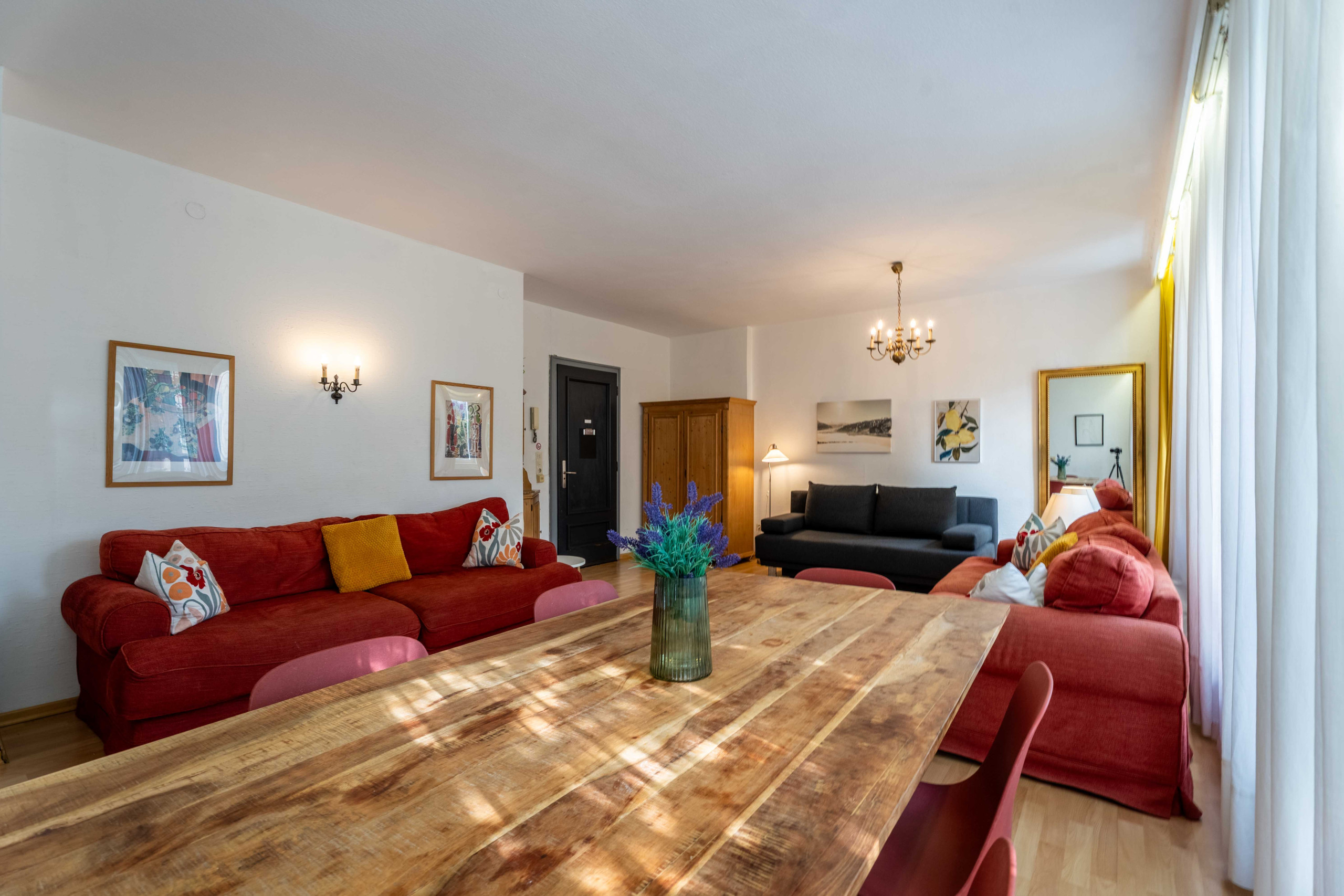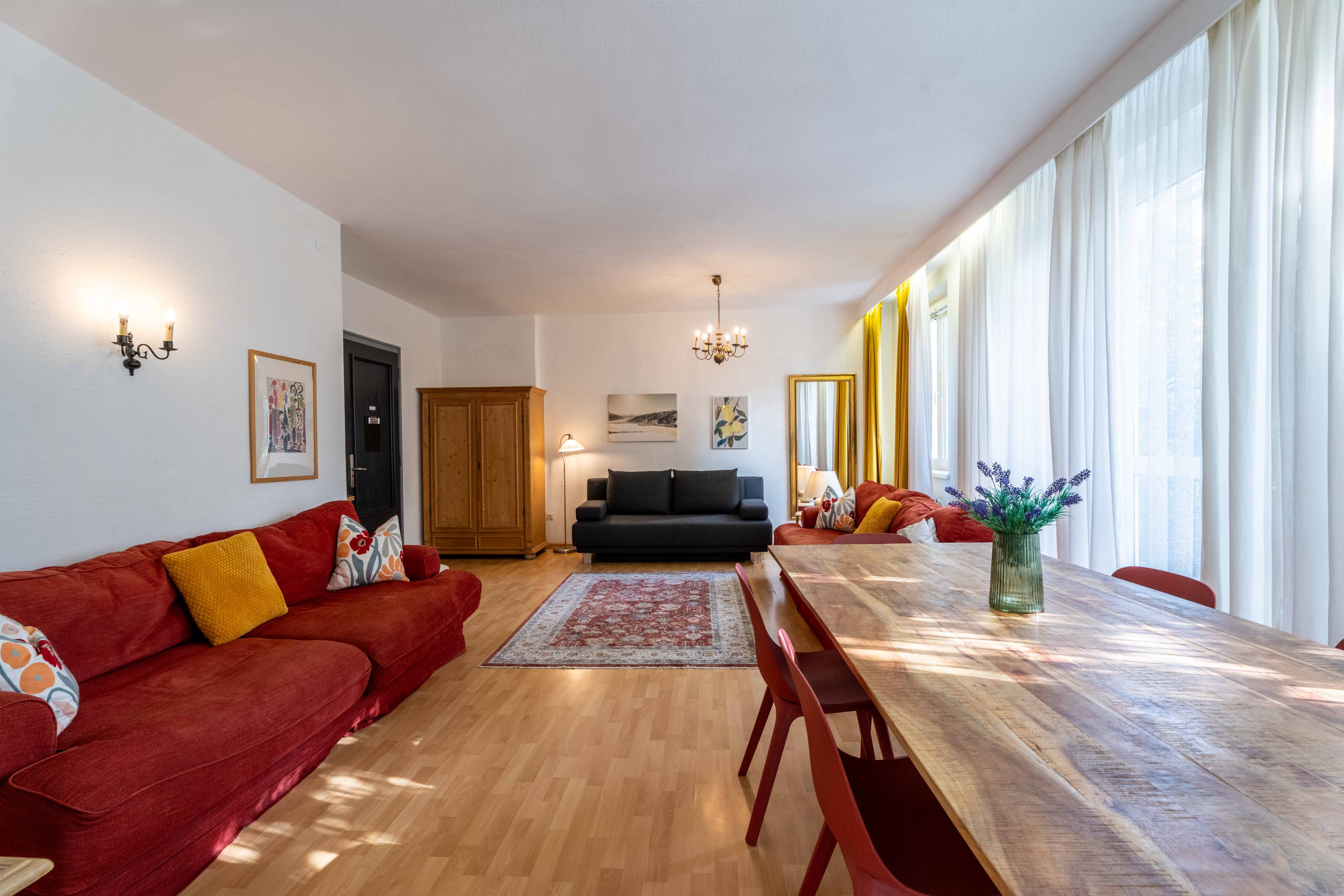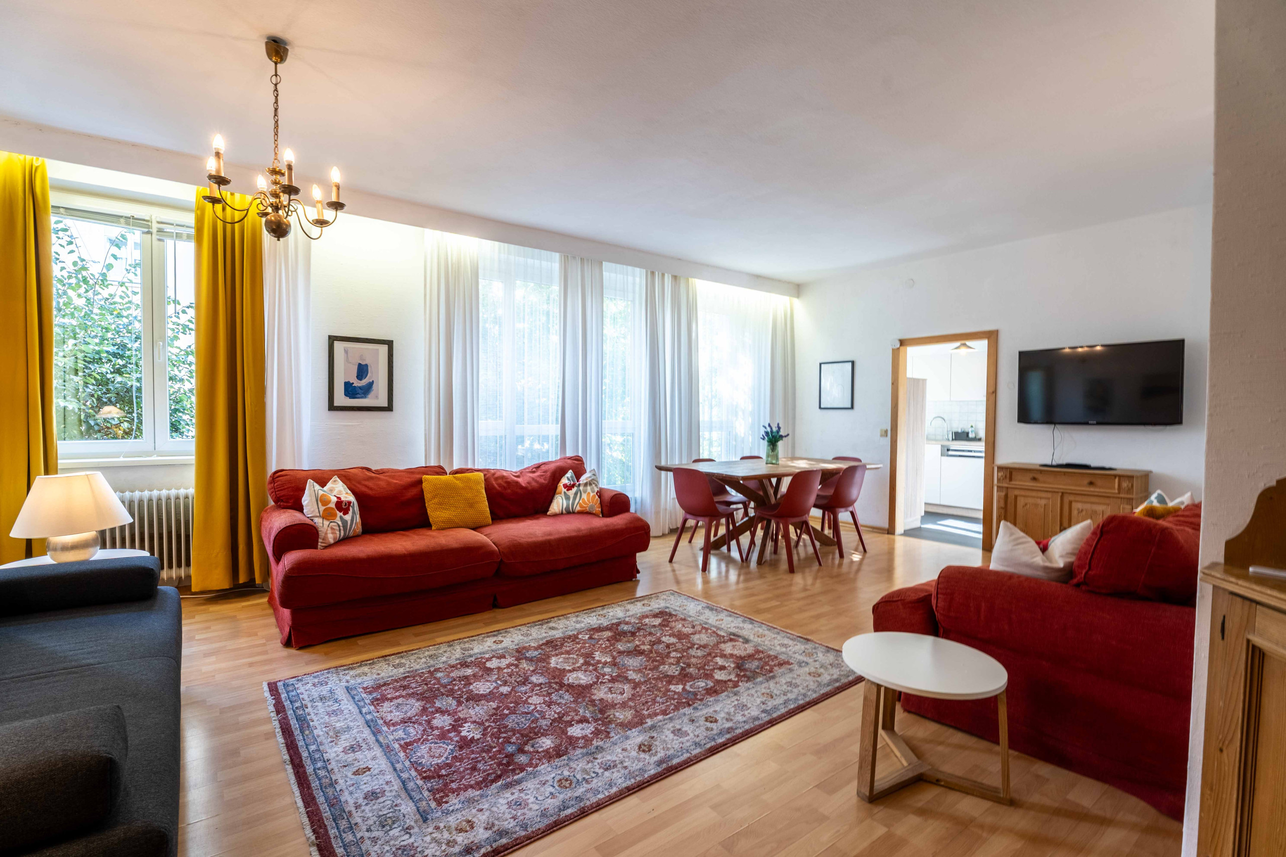 Komfortable Ferienwohnung. Im Zentrum, Balkon. 1 Schlafzimmer. 1 Badezimmer. 55m². 1 - 5 Personen. Genießen Sie Ihren Urlaub in Zell am See in unserem Living Eden - TOP 2 und buchen Sie zum Bestpreis direkt beim Eigentümer. Unser Deluxe Apartment lädt mit je einem Schlaf- und Wohnzimmer für gemütliche Tage nach Zell am See ein. Auf 55m² finden bis zu 5 Personen Platz. Das Beste: Zentrale Lage direkt im Stadtkern, sowie Parkplätze und ein riesiges Wohnzimmer mit Blick auf die Innenstadt von Zell am See. Zu Fuß erreichbar sind: die City Express Gondelbahn (400m), der See (200m), ein Supermarkt (100m), der Bahnhof (150m). Den Golfplatz (4km) und den Flughafen Salzburg (75km) erreichen sie bequem mit dem Auto oder den öffentlichen Verkehrsmitteln. Die Unterkunft verfügt weiter über einen Aufzug, ein Bügeleisen/-brett, einen Internetanschluss (WLAN), einen Föhn, eine Zentralheizung sowie einen Ventilator und einen Fernseher. Die Küche mit elektrischem Kochfeld ist ebenfalls voll ausgestattet: Dort findet sich ein Kühlschrank, ein Backofen, eine Spülmaschine, Geschirr/Besteck, Kochutensilien, eine Kaffeemaschine, ein Toaster und ein Wasserkocher.