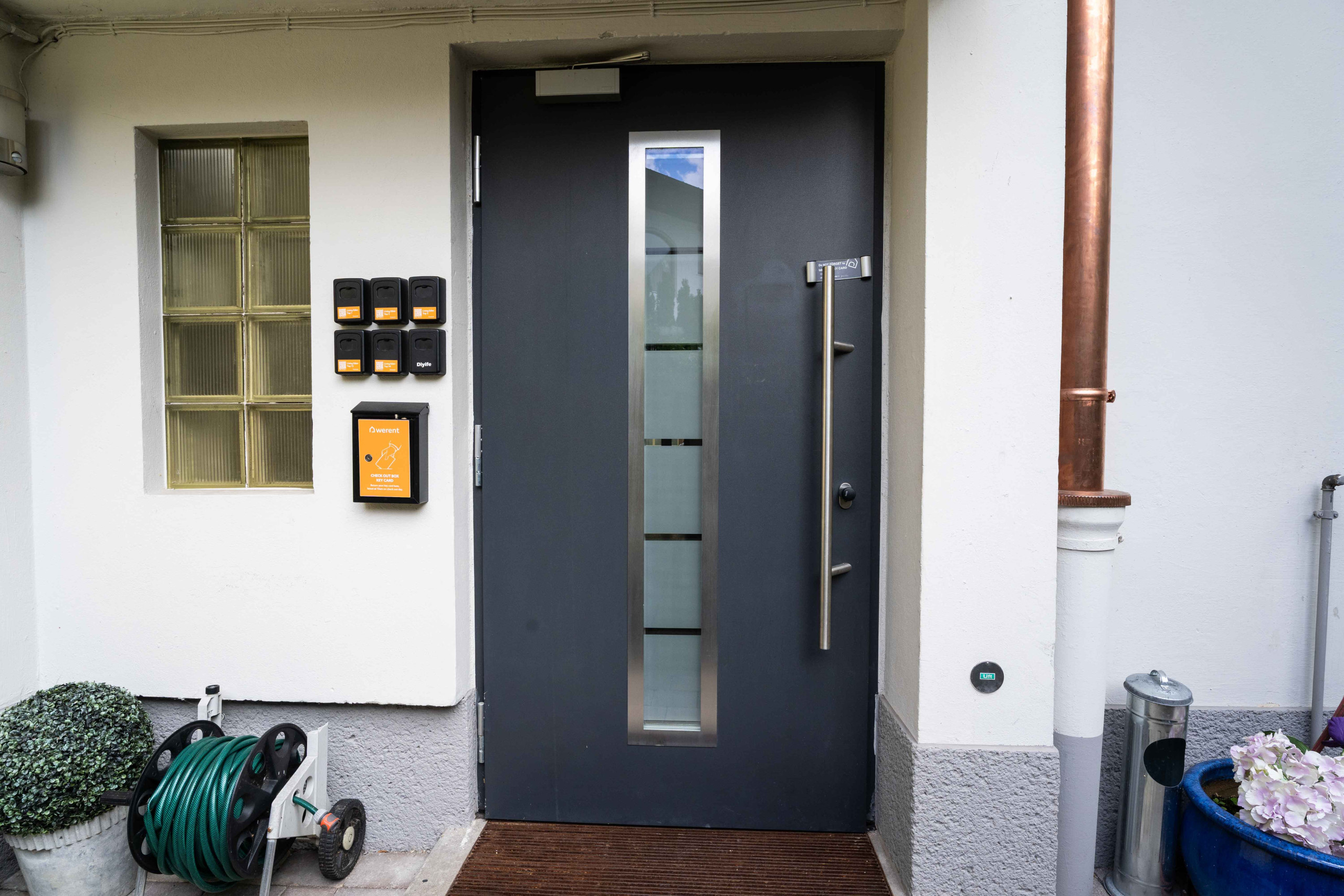 Die Wohnungstür muss unbedingt ausgebessert oder erneuert werden . In der Mitte der Tûr ist eine dünne Spanplatte eingesetzt, ist hellhörig , klappert wenn andere im Haus Türen öffnen und schließen . Nicht sicher man kann die Platte einfach durchtrennen und jedes Geräusch dringt durch ,
