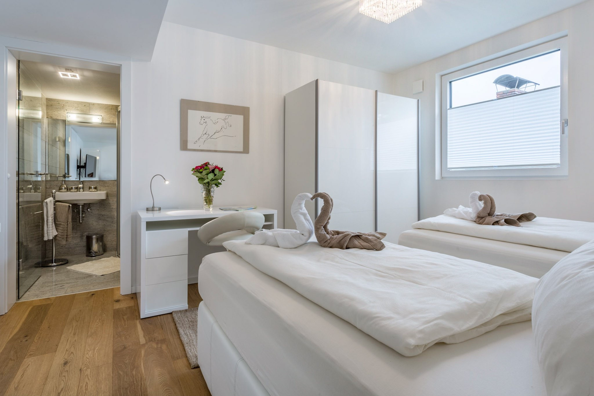 Unser Luxury Apartment Silvia bietet Platz für 4 Personen und verfügt über 124m² Wohnfläche sowie eine großzügige 60m² Sonnenterrasse mit traumhaftem See- und Bergblick. Zwei separate Schlafzimmer sorgen für angenehme Rückzugsmöglichkeiten – beide sind mit einem Doppelbett und TV ausgestattet. Zusätzlich erwartet Sie eine besondere Panorama-Galerie mit beeindruckendem Blick auf den See und die Berge.
