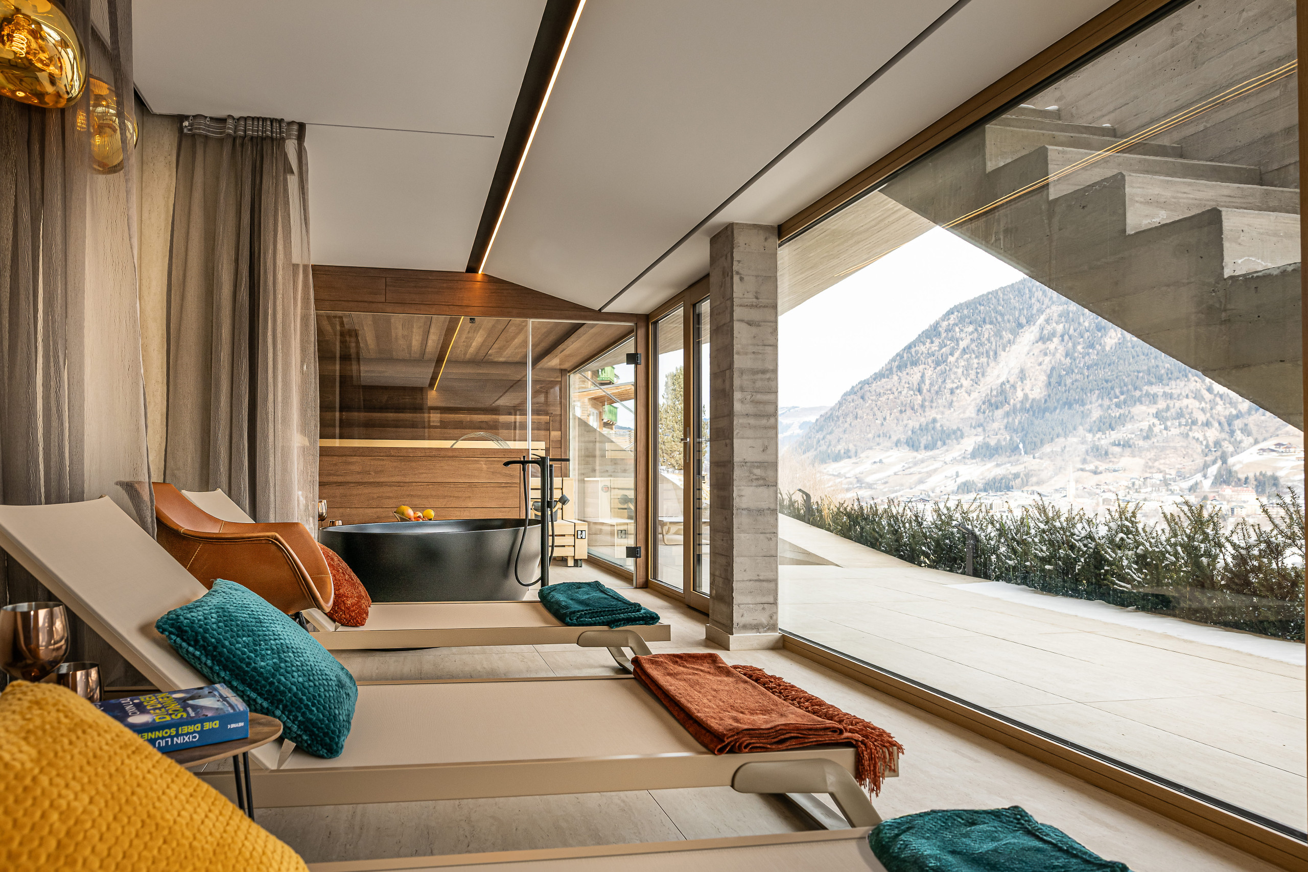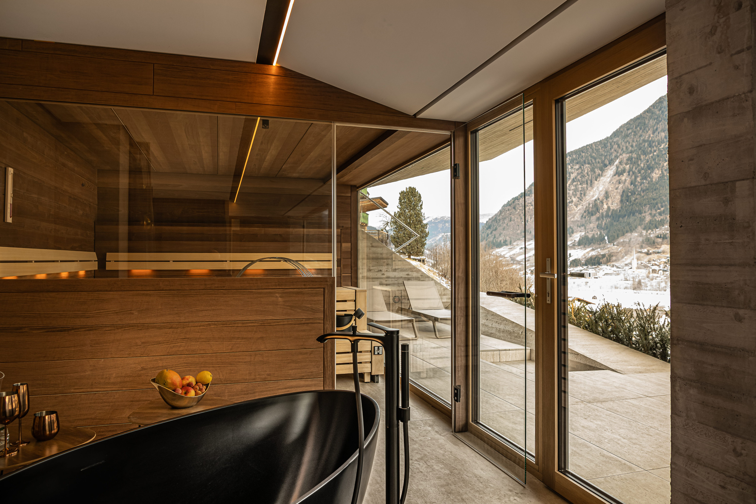 Eröffnung im Dezember 2025 – Entspannen Sie in unserer brandneuen finnischen Sauna und Wellnessoase, wunderschön gestaltet mit natürlichen Alpinmaterialien und atemberaubendem Panoramablick.